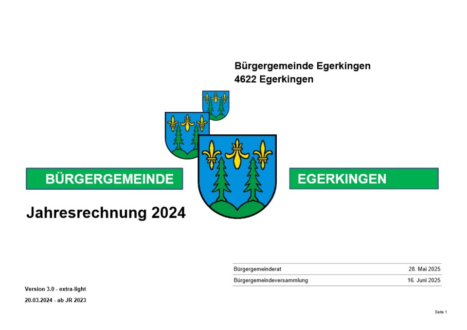 Jahresrechnung 2024 Bürgergemeinde Egerkingen